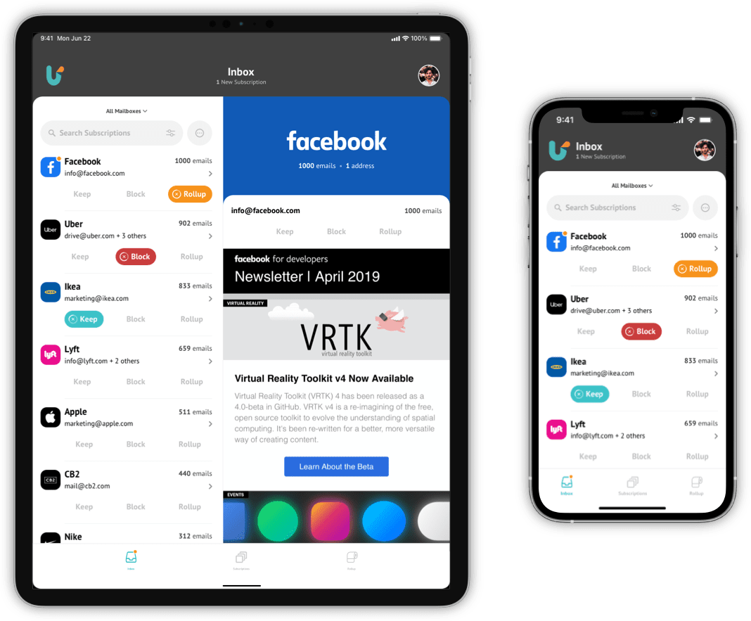 Decluttering your inbox has never been so easy, or looked so good. With the new Unroll.Me, you can block unwanted emails, keep the ones you want, and rollup the rest into a single daily digest.